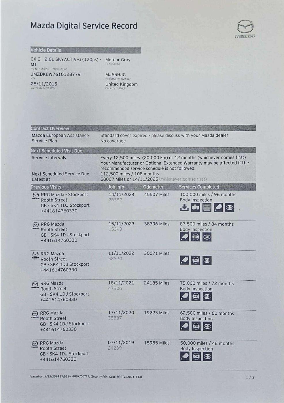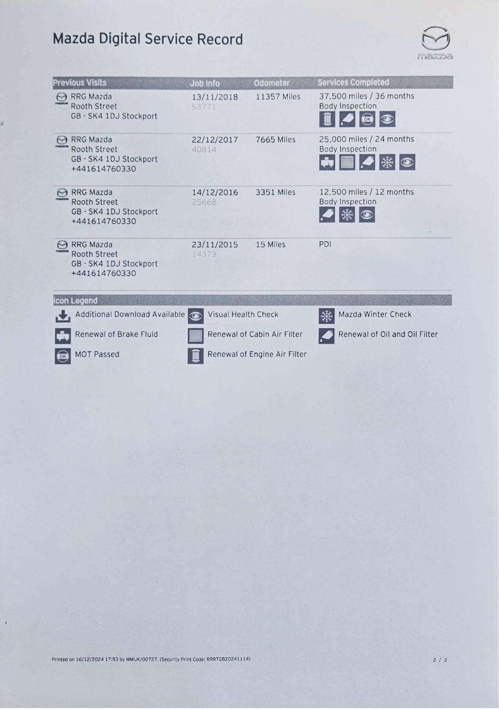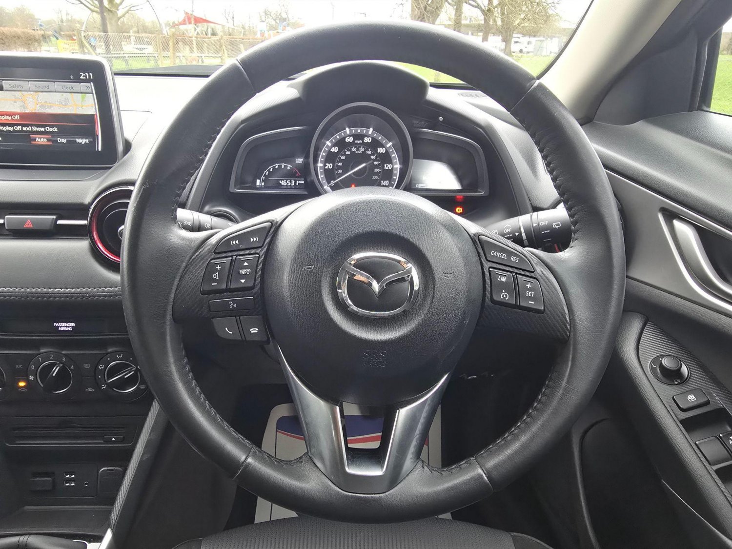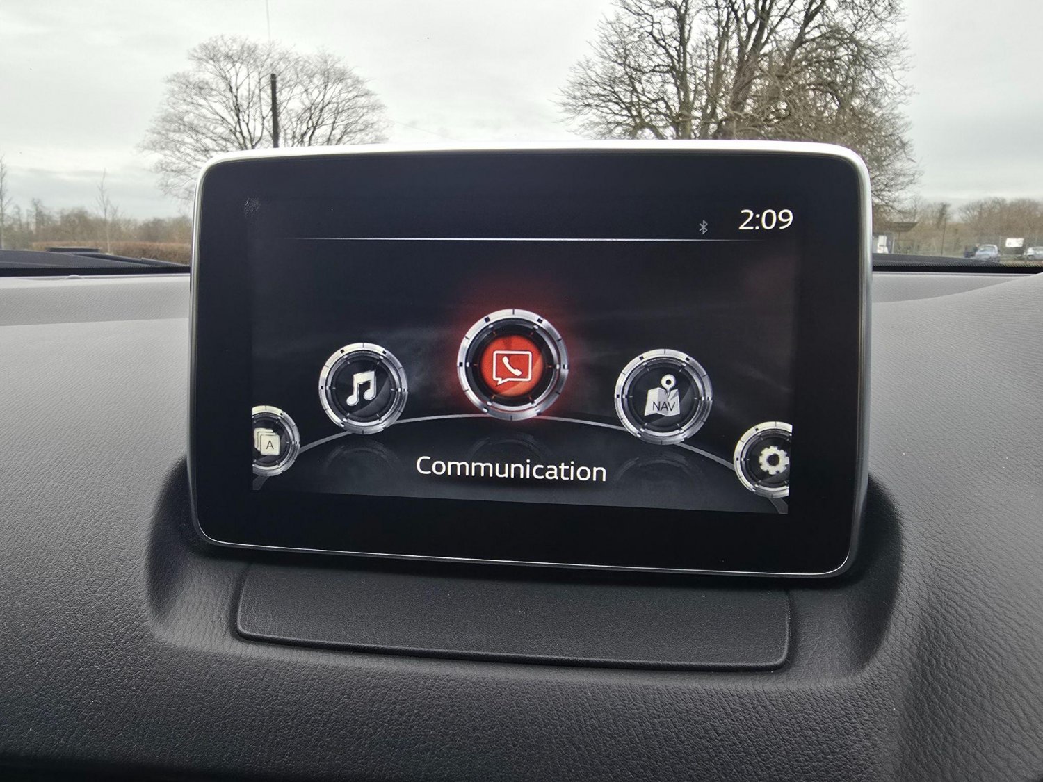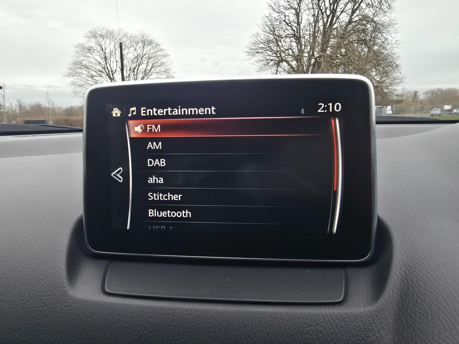 DAB Radio, DSC - Dynamic Stability Control, Dashboard Panel - Black - Soft-touch with Stitching, Daytime Running Lights, Deadlocking, Door Mirrors - Electrically Adjustable-Heated-Folding-Turning Signal, Door Pockets - Front, Door Pockets - Rear, EBA - Emergency Brake Assist, EBD - Electronic Brakeforce Distribution, Electric Windows - Front and Rear with One Touch Auto Up and Down on Drivers Side, Emergency Stop Signalling System - ESS, Engine Start-Stop Button, Exhaust Tailpipes - Twin, Front Knee Pads - Black Plastic, Front Side Airbags, Gear Knob - Leather-Wrapped with Piano Black Surround, Gear Shift Indicator, Glovebox Illumination, Grab Handles - Front Passenger, Grab Handles - Two Rear with Coat Hooks, Handbrake - Leather Wrapped, Headlights - Coming-Leaving Home, Headlights - Halogen, Headlights - Manual Levelling, Hill Hold Assist, ISOFIX Child Seat Anchorage for Outer Rear Seats, Immobiliser, Inner Door Handles - Satin Silver, Luggage Compartment - Flexible Floorboard for Adjustable Floor Height or Secure Separate Storage Space, Luggage Compartment - Light, Luggage Compartment - Tonneau Cover, Mazda Advanced Impact Distribution and Absorption System - MAIDAS, Multimedia Commander, Overhead Console with Sunglassess Holder, Pollen Filter, Power Assisted Steering - Electronic, Radiator Grille - Black, Radio-CD, Rear View Mirror - Manual - Day and Night Mode, Remote Central Locking, SRS - Supplementary Restraint System, Satellite Navigation - European Mapping with 3-years Map Updates, Satellite Navigation System, Seatback Pocket - Rear of Front Passenger Seat, Seatbelt Reminder - Front with Audible Warning, Seats - 60-40 Split Folding Rear, Seats - Drivers Manual Slide-Recline and Height Adjustment, Seats - Front Passenger Manual Slide and Recline Adjustment, Shark Fin Antenna, Side Door Trim - Black Cloth Inserts, Side Sill Trim - Black, Speakers x6, Spoiler - Rear Roof, Steering Wheel - Leather-wrapped with Satin Silver Bezel, Steering Wheel - Mounted Audio and Bluetooth Controls, Steering Wheel - Telescopic and Tilt Adjust, Sunvisors - Driver Ticket Holder, Sunvisors - Driver and Front Passenger with Vanity Mirror, TCS - Traction Control System, Thatcham Catergory 1 Alarm, Three Height Adjustable Rear Head Restraints, Trip Computer, Tyre Pressure Monitoring System, Tyre Repair Kit, USB - iPod Connectivity, Voice Control for Phone, 12V Power Socket - Front, 16in Alloy Wheels - Silver, 7in Colour Touch Screen Display, AUX Socket, Adjustable Speed Limiter, Aha App and Stitcher App Integration, Air Conditioning, Air Vents - Piano Black Surround with Dark Red Inner Ring, Airbags - Curtain Front, Airbags - Curtain Rear, Airbags - Driver, Airbags - Front Passenger, Airbags - Front Passenger Deactivation System, Anti Lock Braking System - 4W-ABS, Bluetooth Audio Streaming, Bluetooth Hands Free System, Courtesy Light with Integral Spotlights, Cruise Control, Cupholder - Centre Console x2