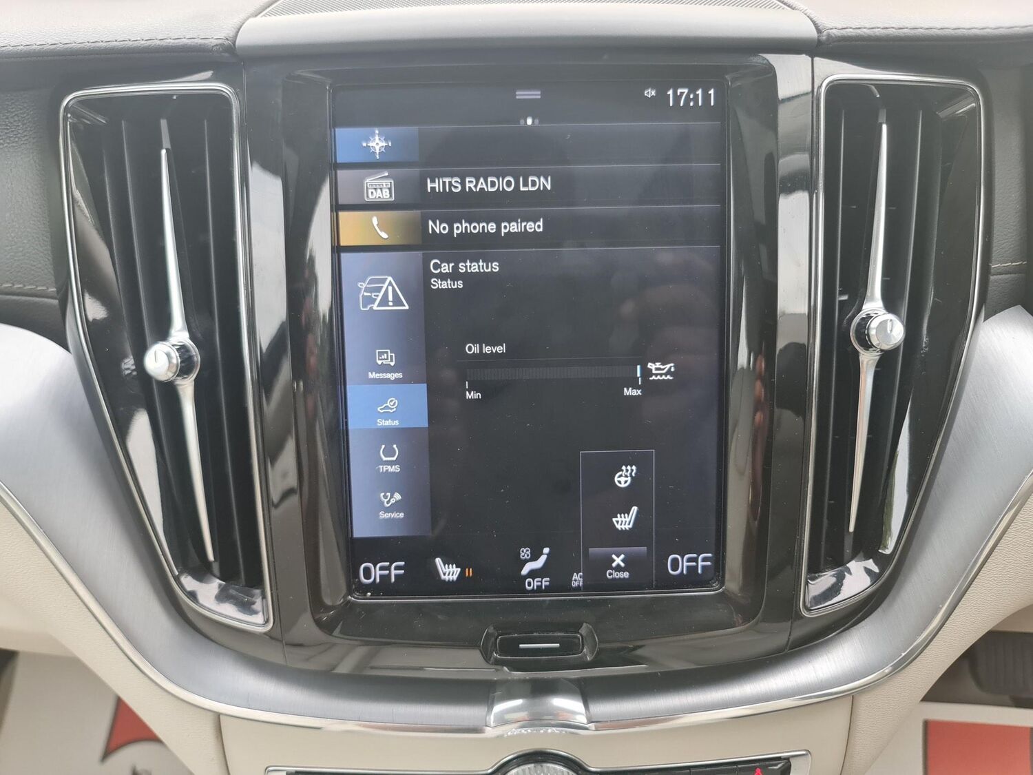 18in Alloy Wheels - 5 Y-Spoke, 2-Zone Electronic Climate Control with CleanZone Air Quality System with Pollen Filter, 9in Centre Console Touch Screen, Active Bending Headlights with Adaptive Shadow Technology, Adaptive Brake Lights including High Level LED Brake Light, Anti-Theft Alarm including Immobiliser - Volume Sensor and Level Sensor, Auto Dimming Interior and Exterior Mirrors, Automatic Headlight Levelling System, B-Pillar Ventilation, Bluetooth Handsfree System, Bright Metal Luggage Compartment Threshold, City Safety with Steer Assist, Colour Co-Ordinated Autofolding Heated Power Door Mirrors, Cruise Control, DAB - Digital Audio Broadcasting Radio, Drive Mode Settings, Driver Alert Control with Lane Keeping Aid, Dynamic Chassis, First Aid Kit, Front Aluminium Tread Plates, Front Footwell and Side Step Illumination, Front LED Fog Lights with Cornering Function, Front Reading Lights - Theatre Lighting and Centre Armrest Storage Illumination, Glovebox Compartment with Illumination, Headlight Cleaning System, Heated Aqua Blades, Heated Front Seats, Illuminated Vanity Mirrors with Ticket Holder, Iron Ore Inlays, Keyless Start, LED Headlights with Active High Beam Incorporating Day Running Lights, Luggage Compartment Illumination, Oncoming Lane Mitigation, Passenger Airbag Cut-Off Switch, Power Driver Seat with Memory for Seat and Exterior Mirrors, Power Operated Tailgate, Power Parking Brake with Auto Hold Function, Rear Armrest with Storage and Cupholders, Rear Park Assist, Road Sign Information Display, Roof Rails - Integrated Silver, Roof Spoiler, Run-Off Road Mitigation, Run-Off Road Protection, SIPS - Side Impact Protection System, Seatbelt Reminder and Pretensioners, Sensus Connect with High Performance Sound, Sensus Navigation, Stability and Traction Control, Tyre Pressure Monitoring System, Underfloor Cargo Storage, Vehicle Deceleration Control, Versatile Split Folding Rear Seats - 60-40, Voice Activated Control for Key Functions, Volvo On Call with App, WHIPS - Whiplash Protection System - Front Seats, Warning Triangle, Winter Pack II
